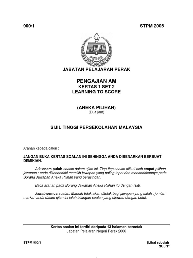 Stpm Pengajian Am Soalan Kertas 1 Set 2